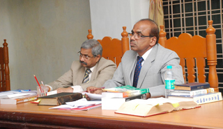 Hon'ble Sri Justice B.Sesha Sayana Reddy, Judge Andhra Pradesh High Court and Prof. Y. Satyanarayana, Vice Chancellor, A.P. Law University, acting as Judges in Finals of A.P. State Law Colleges Moot Court Competition 2009 conducted inthis college...