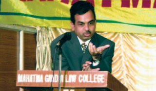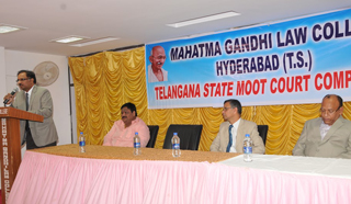Honorable Justice C. Praveen Kumar , Judge High Court of Judicature at Hyderabad addressing students during the inaugural ceremony of the First Telangana State level Moot Court Competition held at Mahatma Gandhi law College.